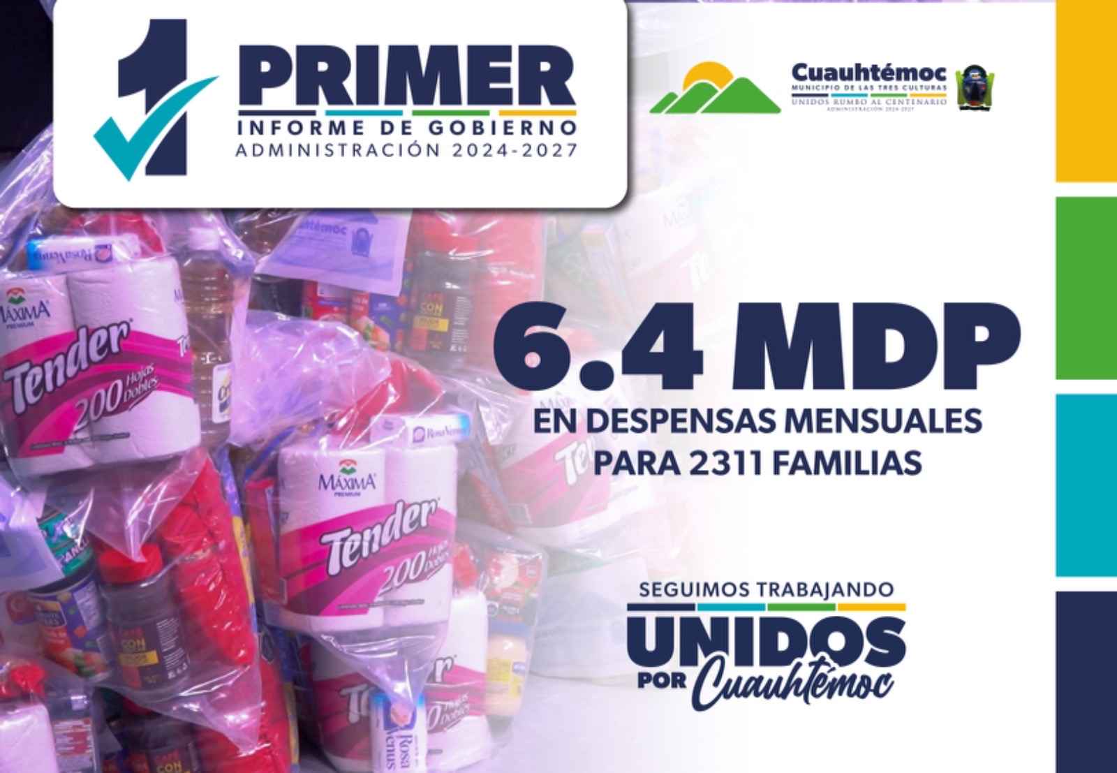 Durante el primer año de Administración del alcalde Beto Pérez, entregó 2311 despensas mensuales, al mismo número de familias en condiciones de vulnerabilidad, lo que representó una inversión total de $6,492,893.86.