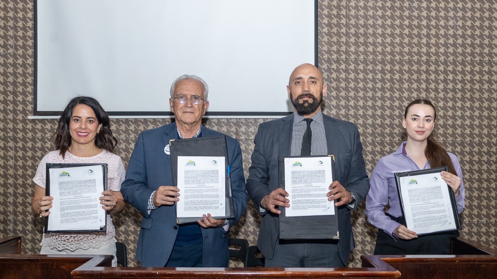 Fue el marco para la firma de un convenio de colaboración en defensa de los derechos de las mujeres, a través de acciones que generen conciencia para la atención y prevención, en la que participaron el alcalde Beto Pérez; Alejandro Carrasco, presidente interino de la Comisión Estatal de Derechos Humanos; la directora del Instituto Municipal de las Mujeres, Abigail Jiménez; y la secretaria del Ayuntamiento, Luly Pérez de Anda.