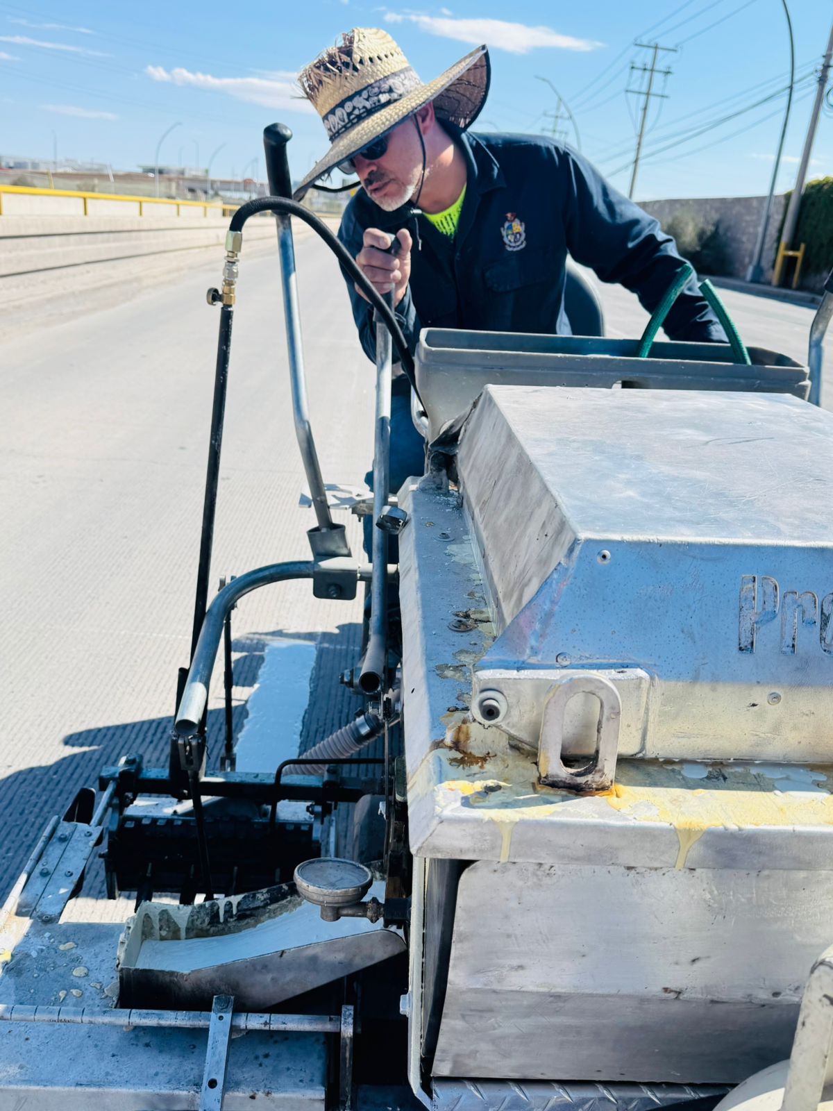En esta ocasión la cuadrilla está aplicando pintura termoplástica para la división de carriles sobre la Teófilo Borunda, desde la Paseo de la Victoria hasta la Francisco Villarreal Torres, acciones que estarán concluyendo este próximo viernes.