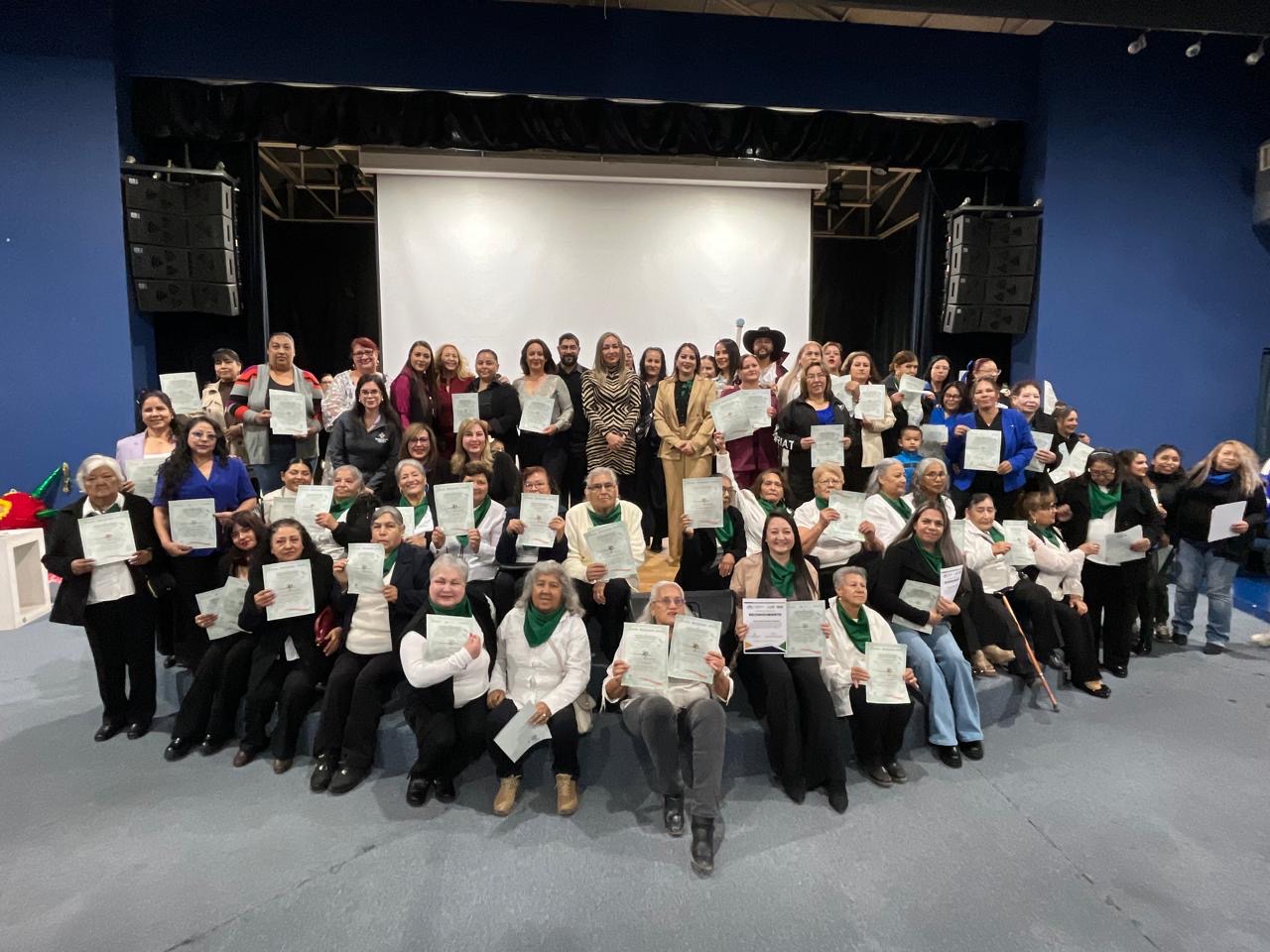 Se llevó a cabo la ceremonia de graduación donde se entregaron constancias avaladas por la SEP, a quienes concluyeron capacitaciones en: cocina oriental, repostería menonita, esferas, colorimetría, costura industrial, diseño de uñas, corte y confección, patronaje de prendas, piñatas, corte de cabello e inteligencia artificial.
