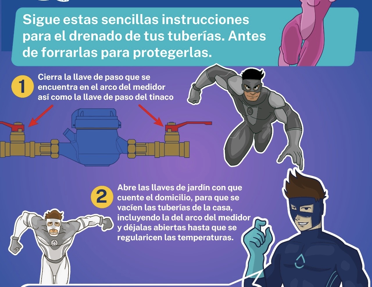 Entre las principales medidas, se exhorta a proteger los ductos ubicados al exterior, como los de los tinacos, mediante el uso de hule espuma, papel periódico o bolsas de plástico, además de realizar un drenado previo para evitar fugas.